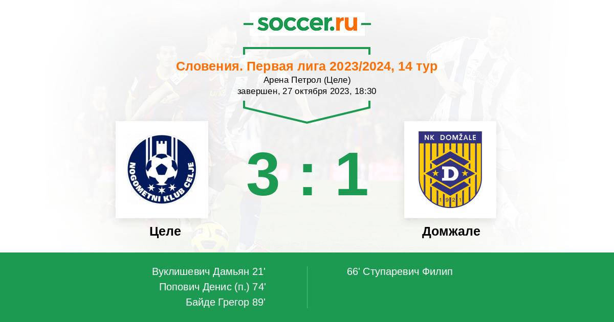 | Словения. Первая Лига | 68 | 27 | 23 | 18 |