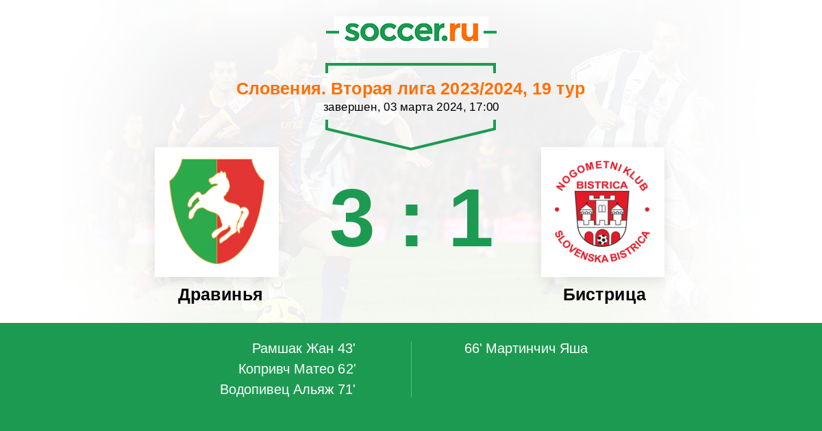 | Словения. Вторая лига | 4 | 1 | 3 | 0 |
