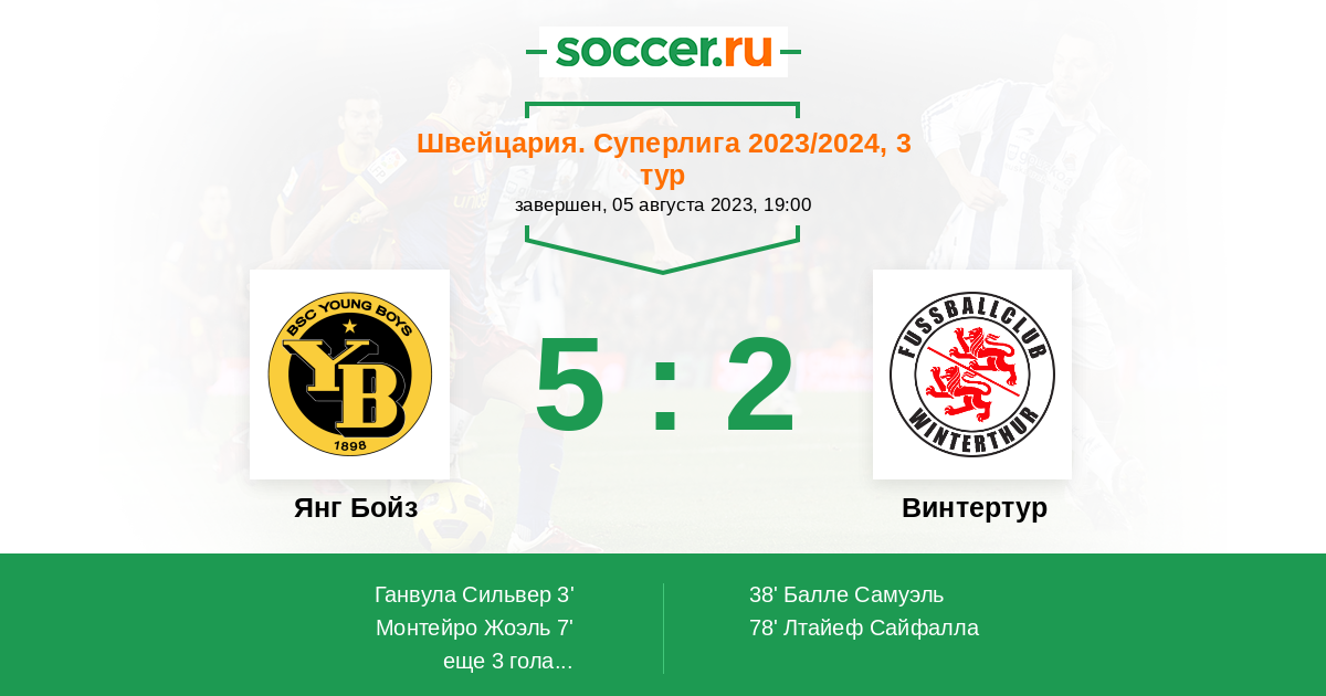 | Янг Бойз | 38:10 | 21:3 | 17:7 |