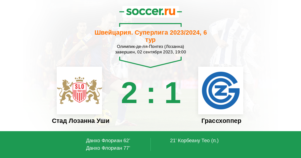 | Стад Лозанна Уши | 5:9 | 1:1 | 4:8 |