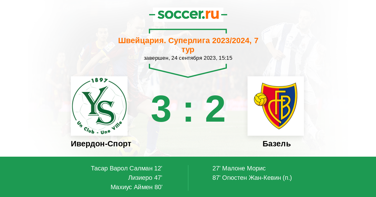 | Ивердон-Спорт | 2:15 | 1:6 | 1:9 |