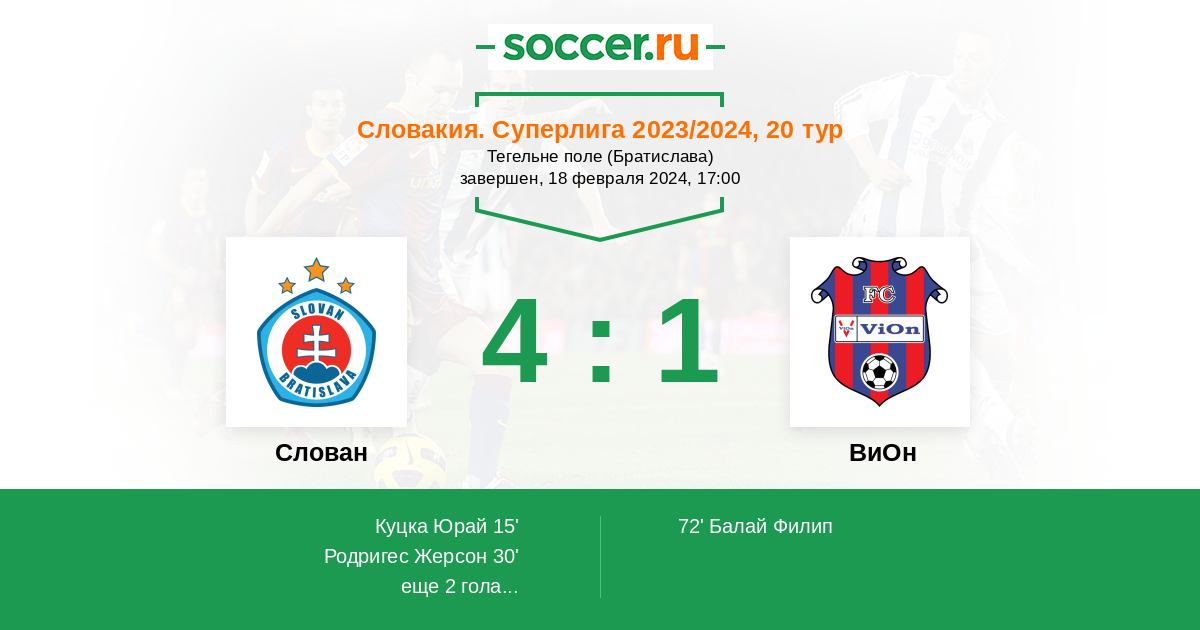 | Словакия. Первая лига | 4 | 1 | 0 | 3 |