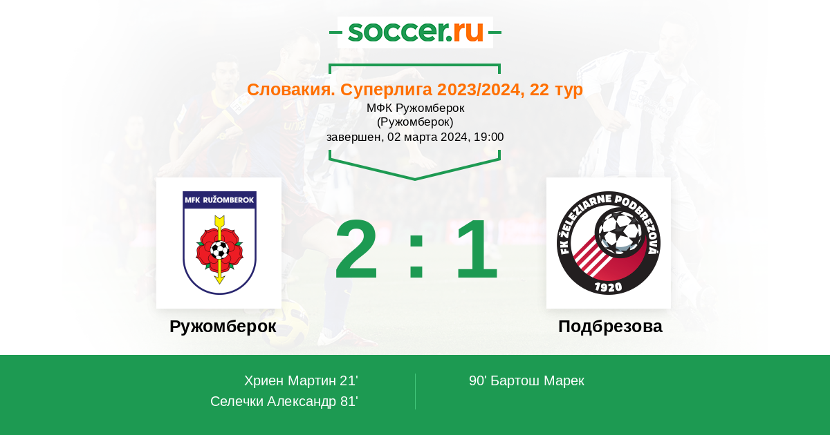 Последние 5 игр дома Ружомберок
