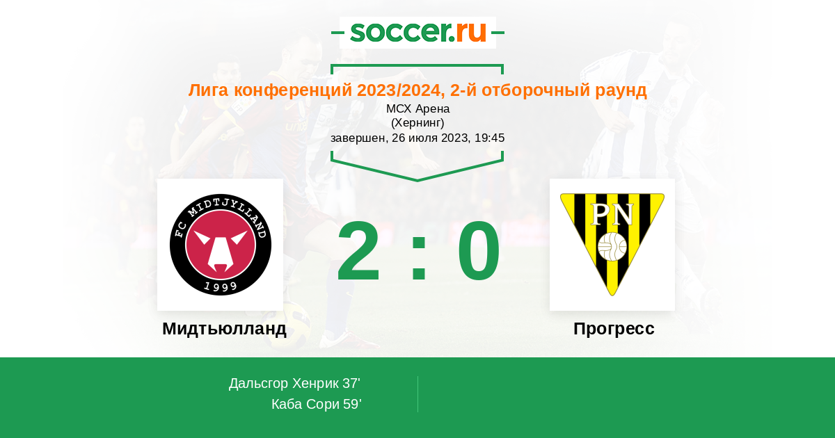 | Мидтьюлланд | 1:2 | 0:0 | 1:2 |