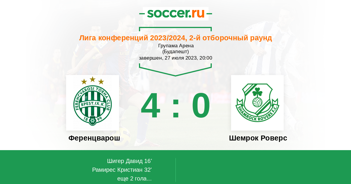 | Шемрок Роверс | 1:6 | 1:2 | 0:4 |