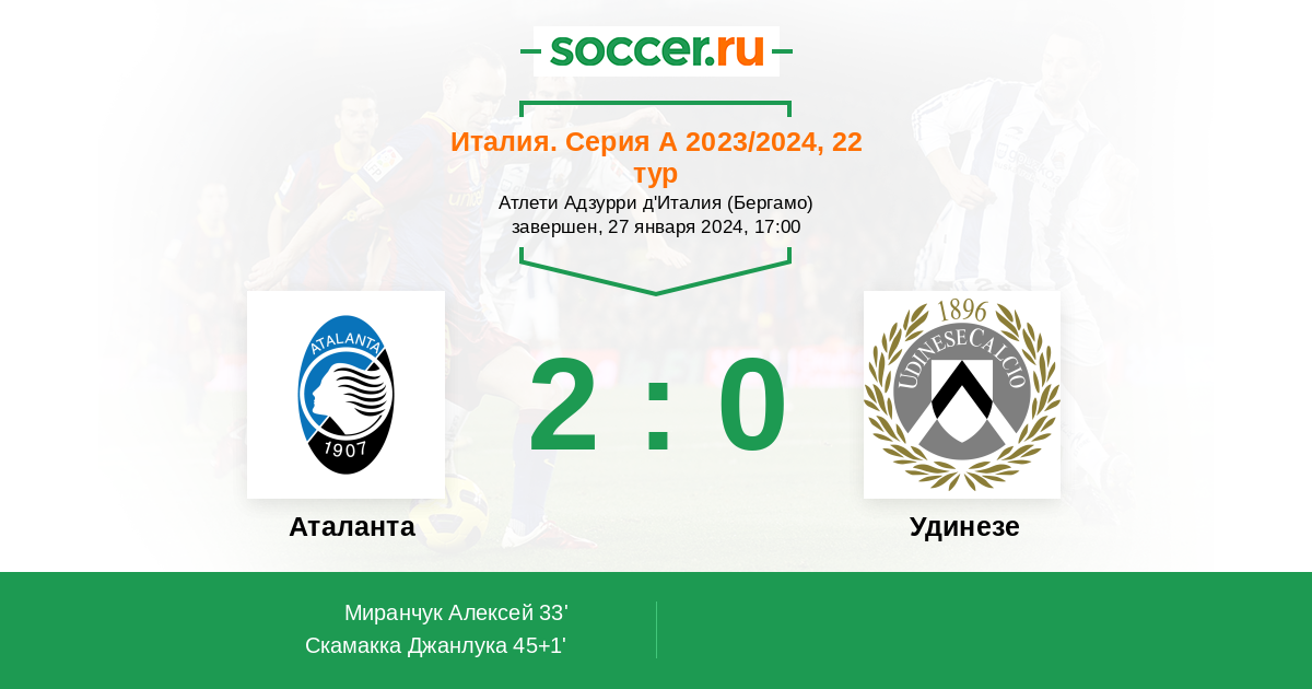 | Аталанта | 67:67 | 31:21 | 36:46 |