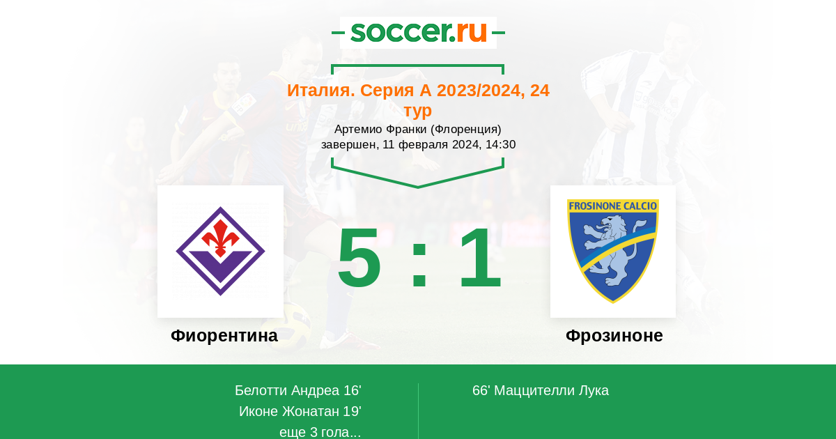 | Фиорентина | 6:4 | 4:2 | 2:2 |