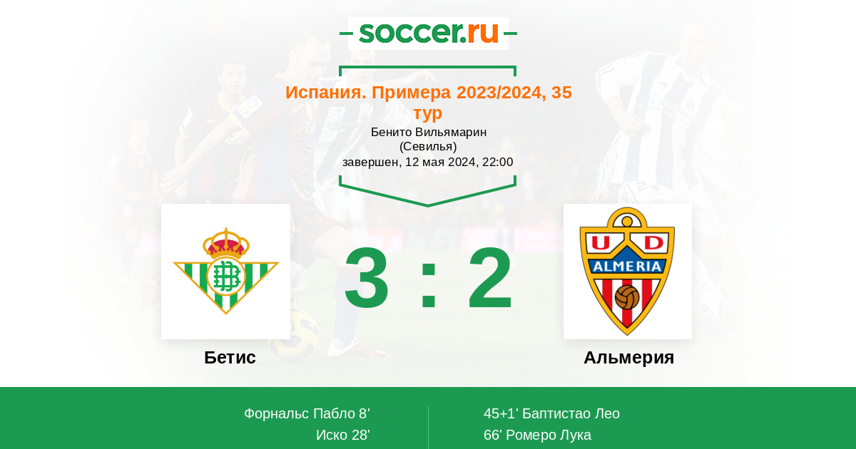 | Бетис | 18:16 | 11:7 | 7:9 |