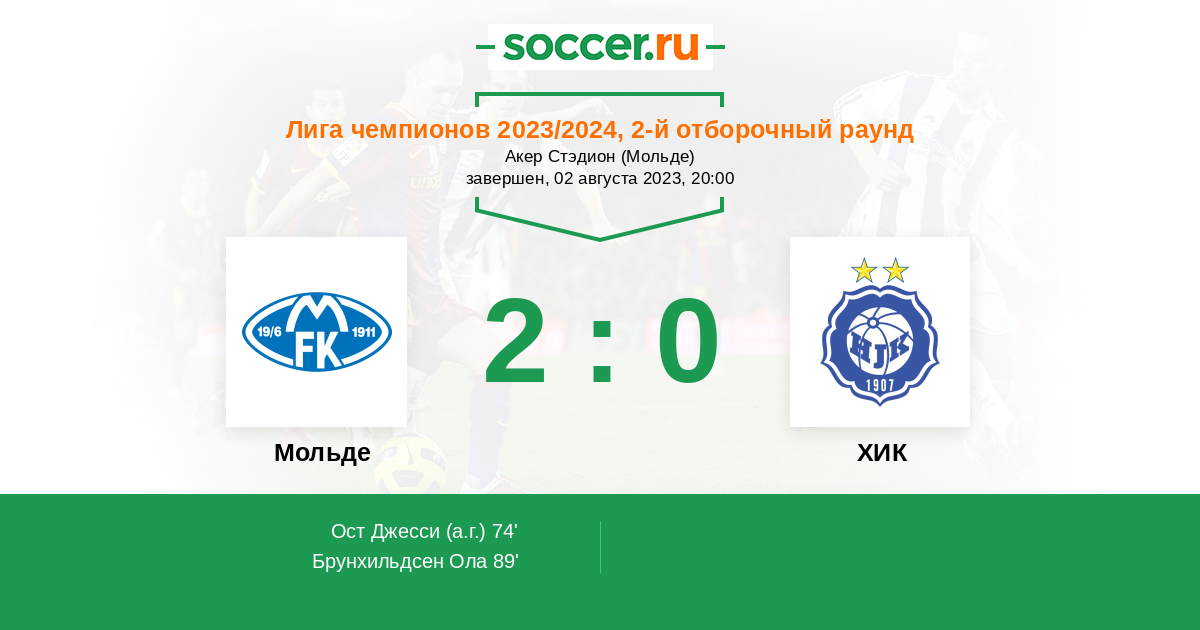 | Мольде | 2:3 | 0:0 | 2:3 |