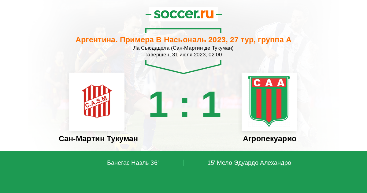 | Сан-Мартин Тукуман | 17:5 | 14:4 | 3:1 |