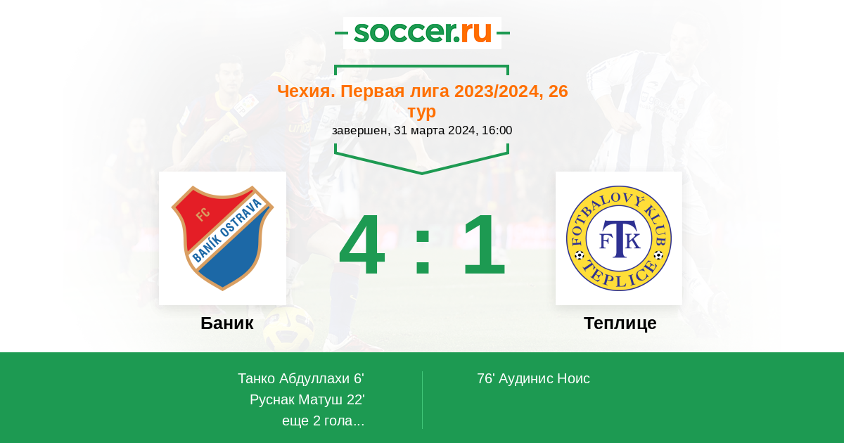 Последние 5 игр дома Теплице