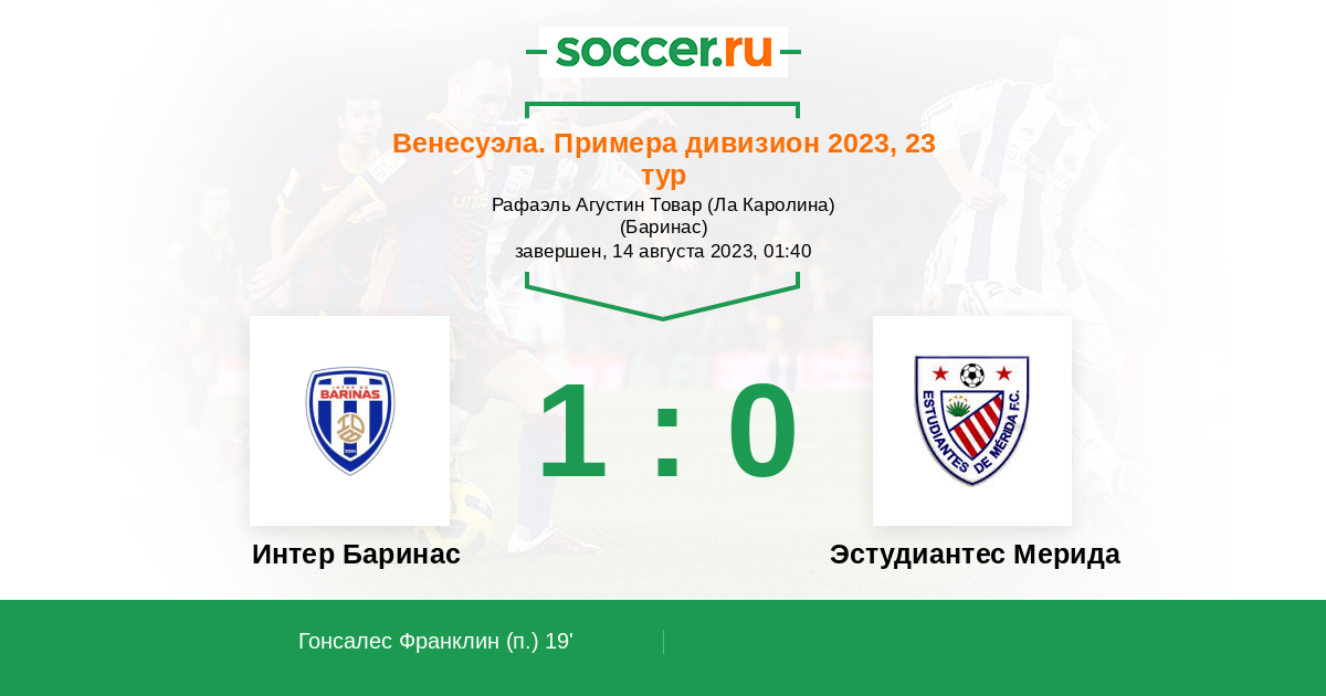 | Интер Баринас | Эстудиантес Мерида | |