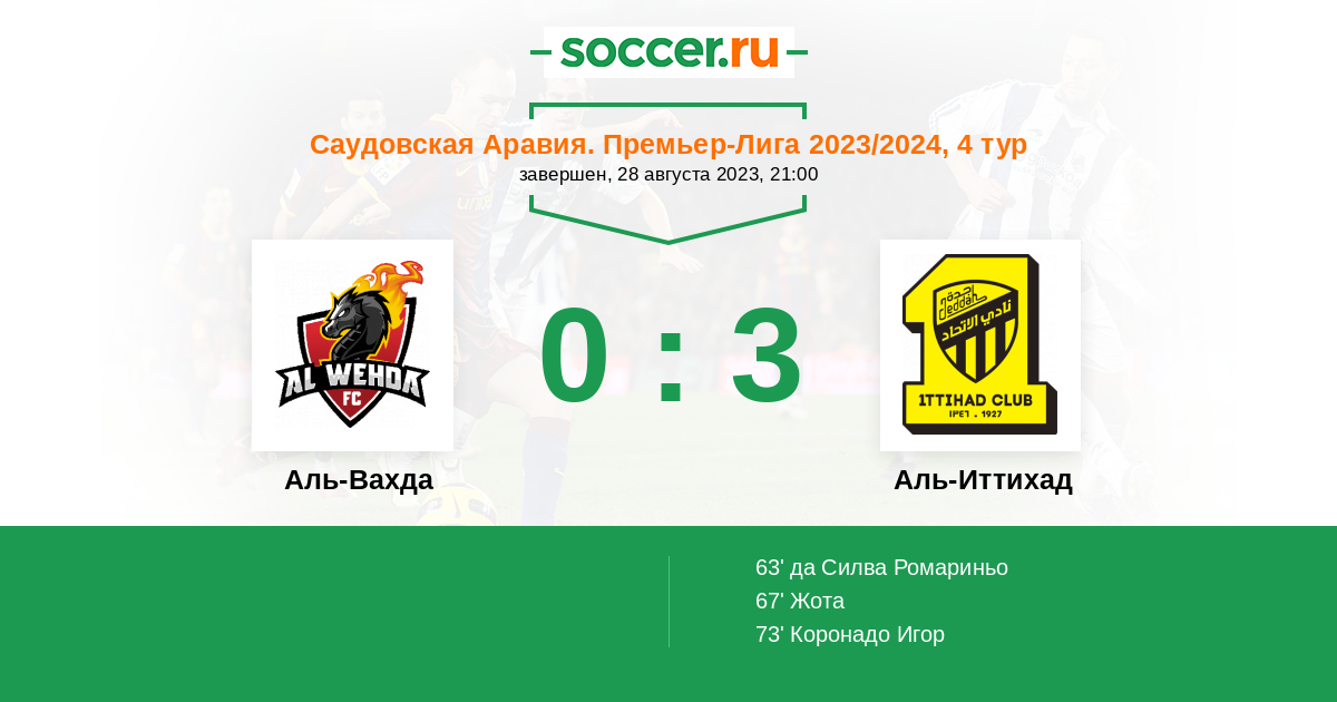 | Саудовская Аравия. Премьер-Лига | 32 | 4 | 20 | 8 |