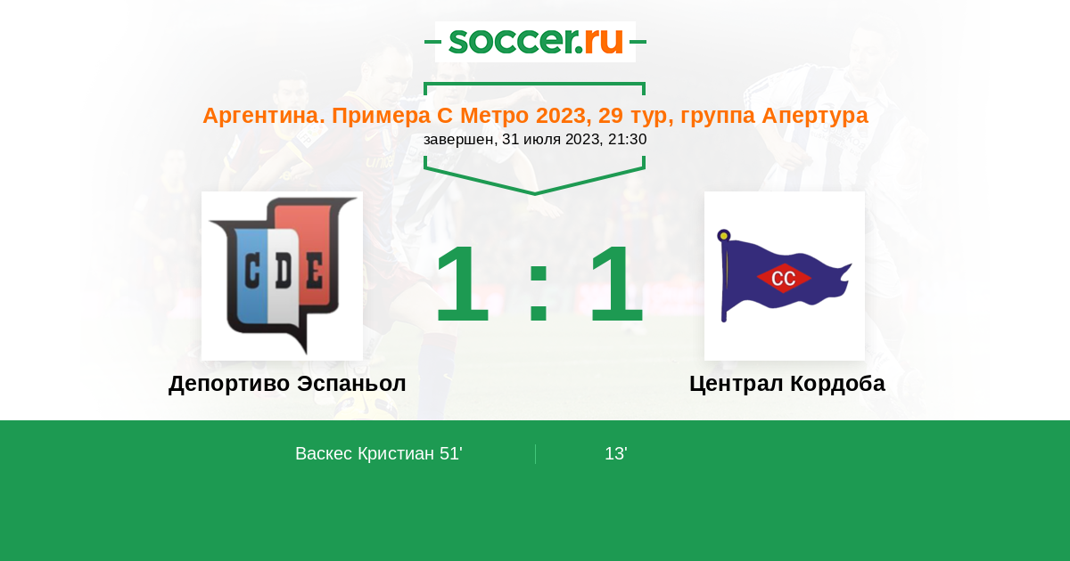 | Централ Кордоба | 29:32 | 16:19 | 13:13 |