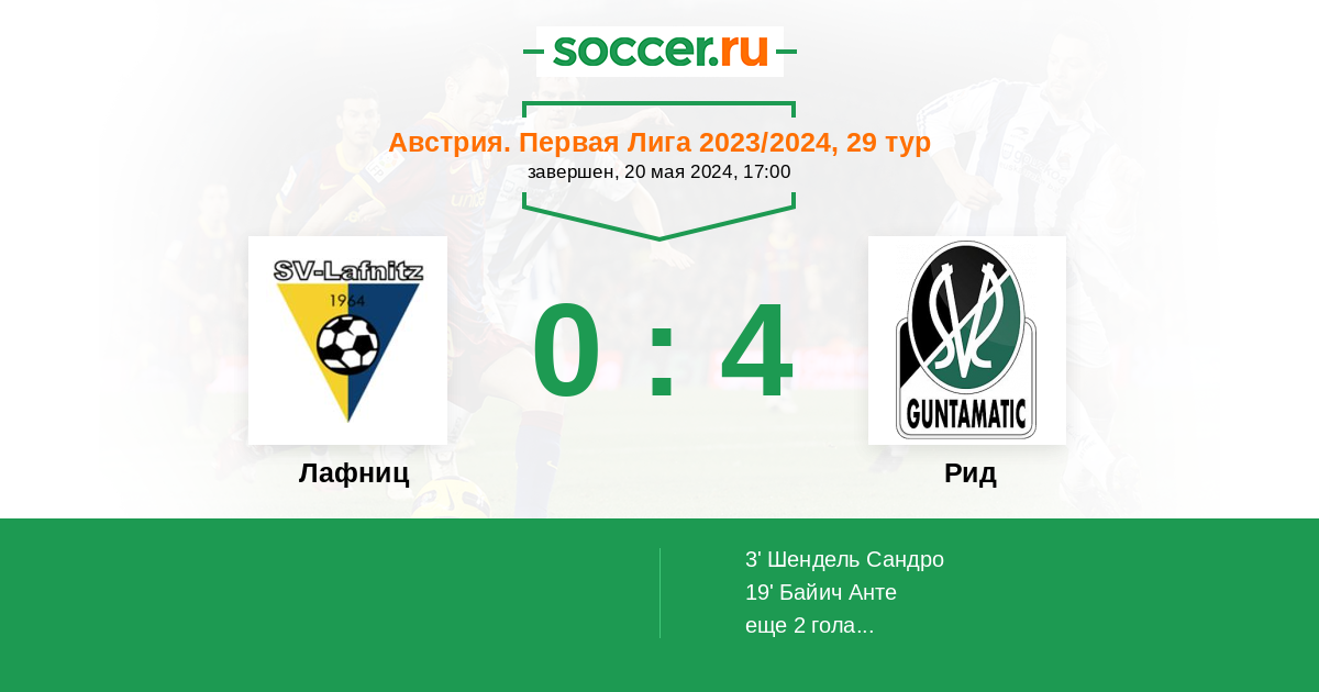 | Лафниц | 1:18 | 0:4 | 1:14 |