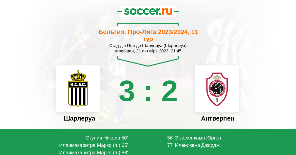 | Шарлеруа | 50:50 | 22:12 | 28:38 |