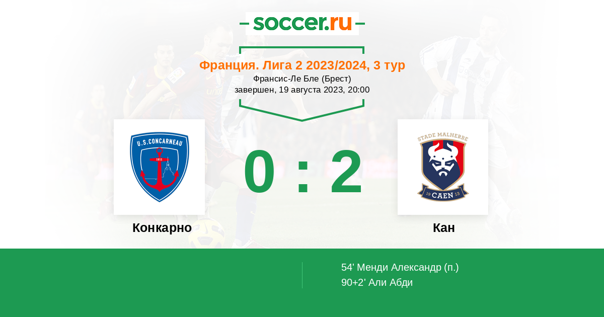 | Конкарно | 0:1 | 0:0 | 0:1 |