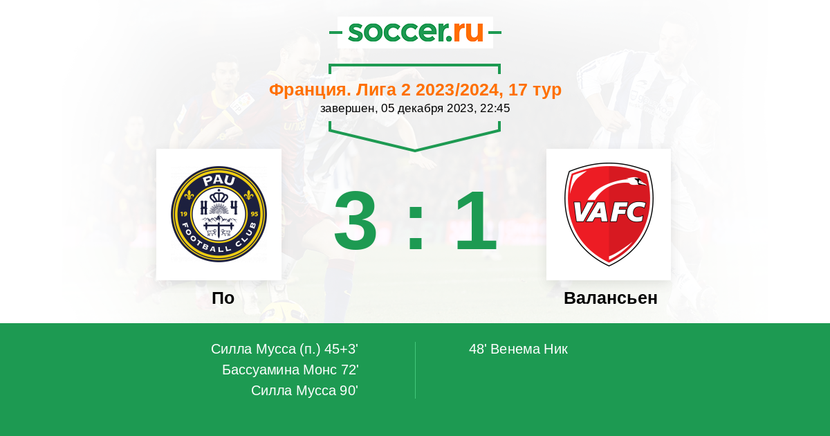 | Валансьен | 20:22 | 13:6 | 7:16 |