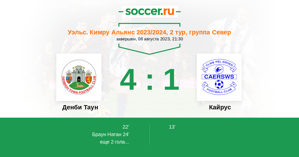 | Денби Таун | 7:4 | 5:2 | 2:2 |