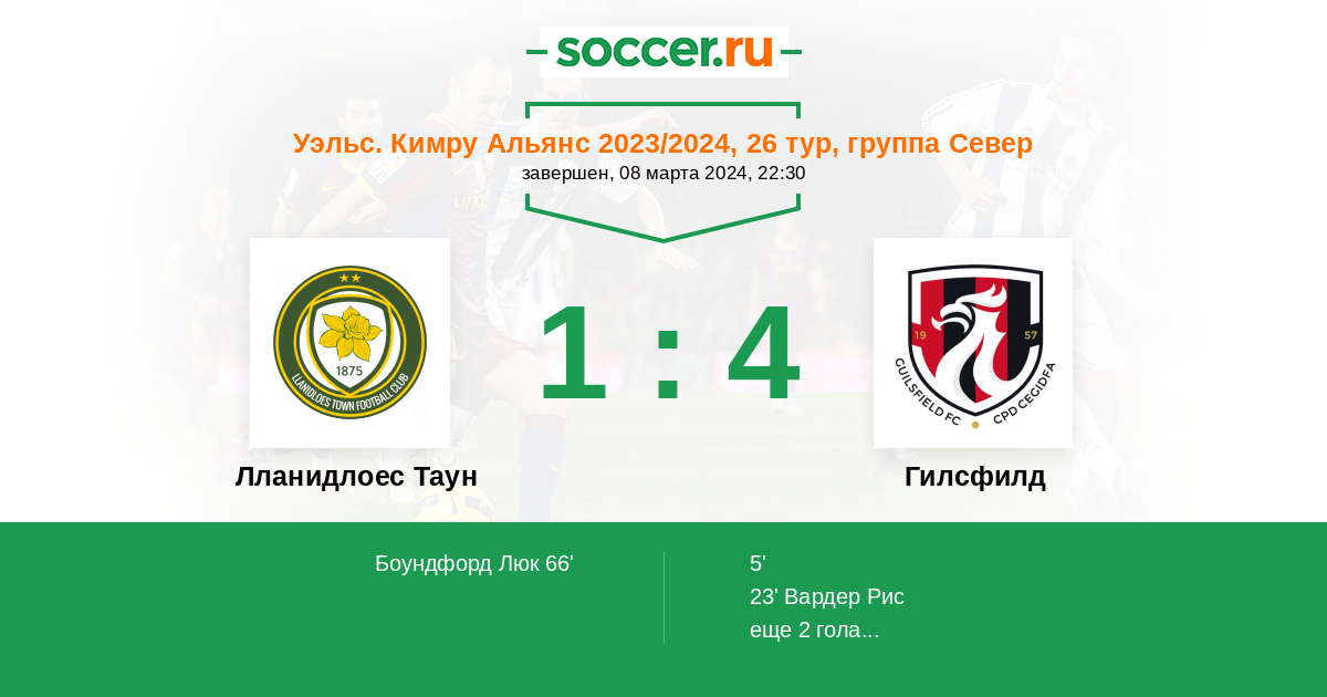 | Лланидлоес Таун | Гилсфилд | |