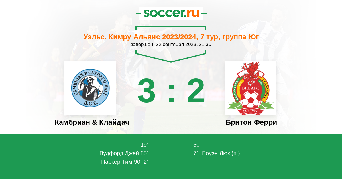 | Бритон Ферри | 15:23 | 9:13 | 6:10 |