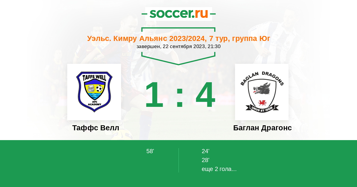 | Таффс Велл | 2:5 | 1:3 | 1:2 |