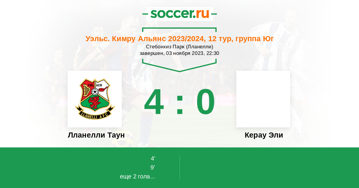 | Лланелли Таун | 7:3 | 3:1 | 4:2 |