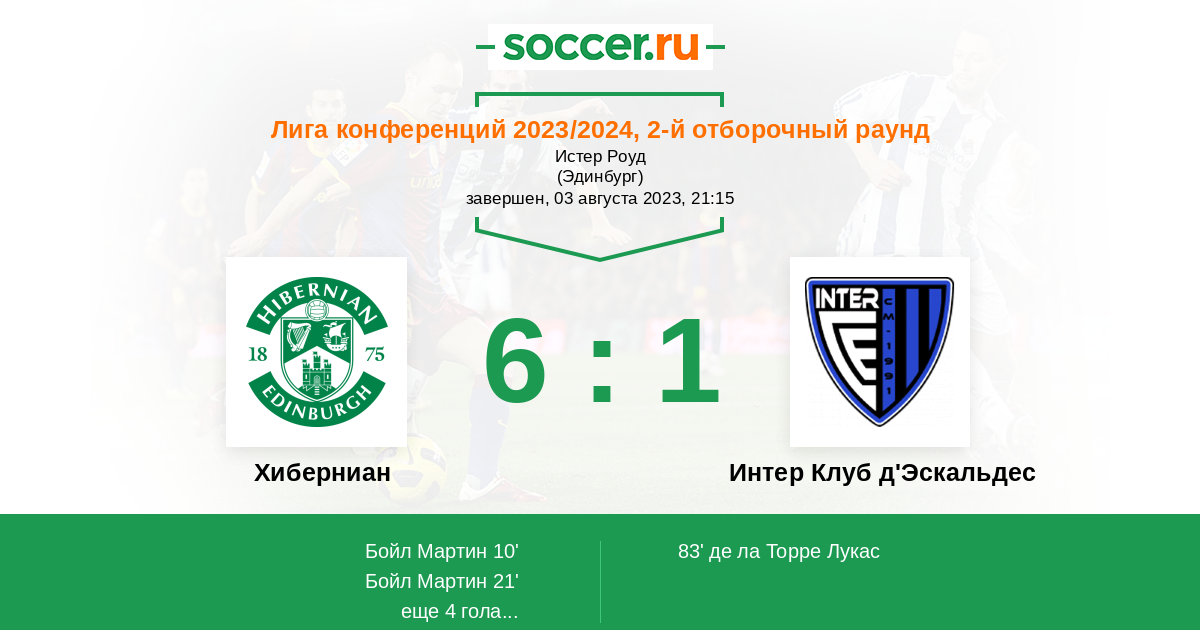 | Хиберниан | Интер Клуб д'Эскальдес | |