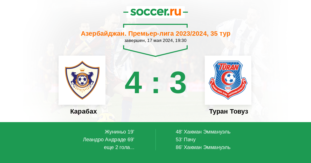 | Туран Товуз | 11:26 | 7:16 | 4:10 |