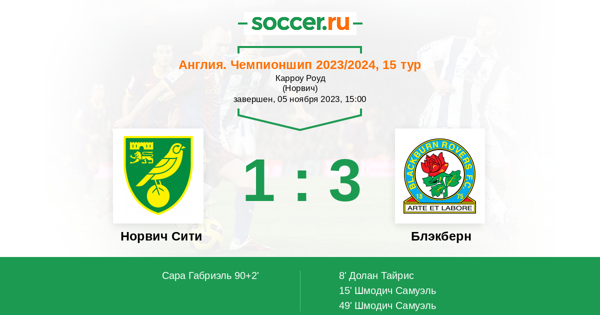 | Норвич Сити | Блэкберн | |