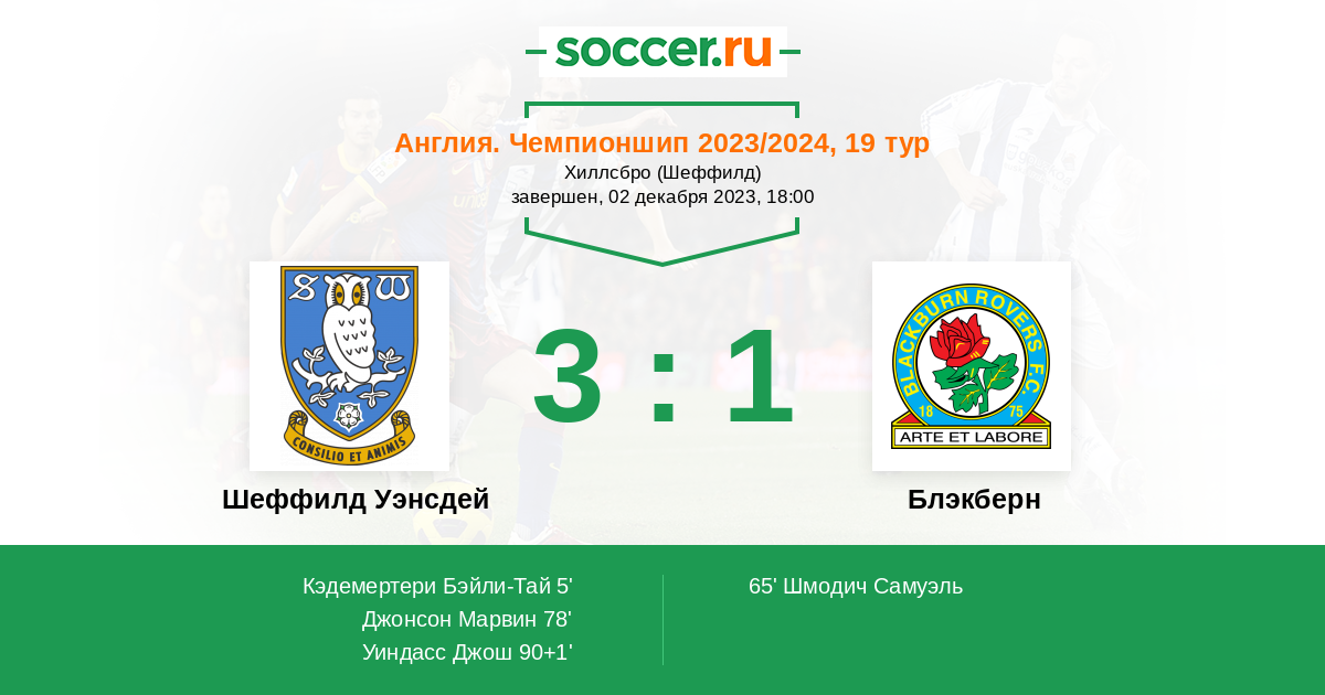 | Шеффилд Уэнсдей | Блэкберн | |