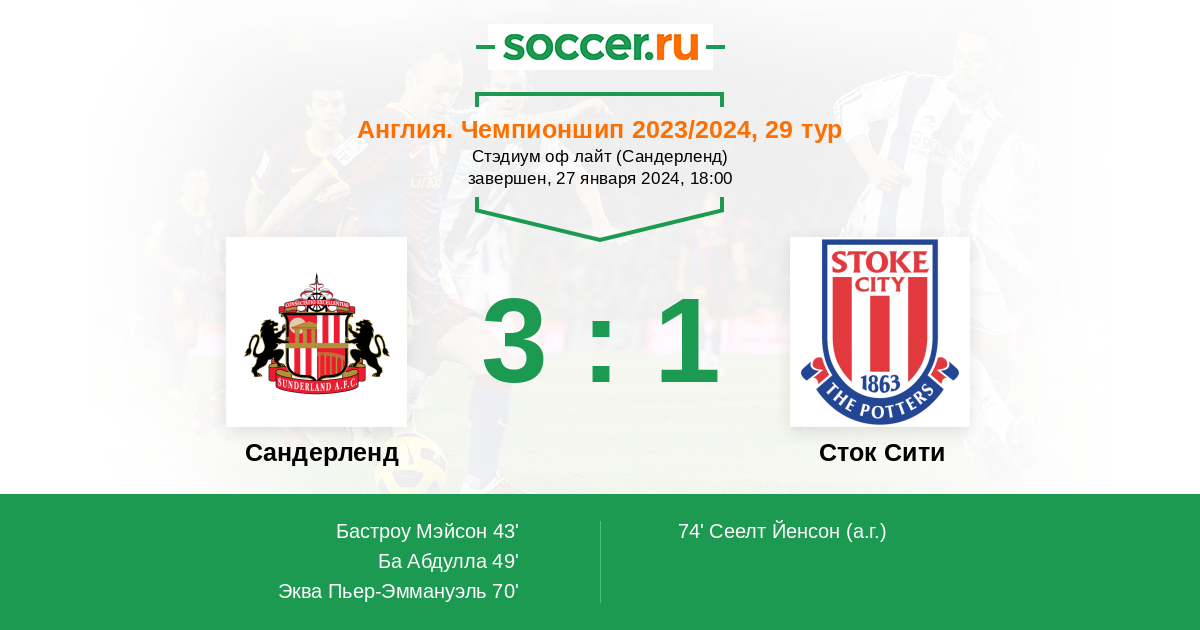 | Сток Сити | 29:28 | 14:7 | 15:21 |
