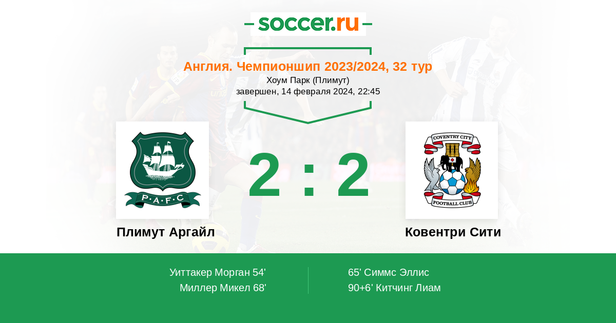 | Плимут Аргайл | 23:24 | 17:7 | 6:17 |