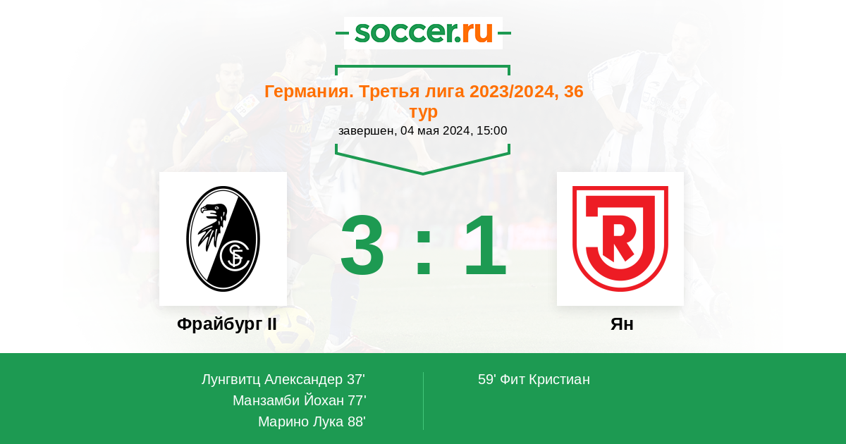 | Фрайбург II | 2:3 | 0:0 | 2:3 |