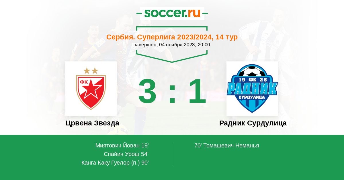 | Сербия. Суперлига | 19 | 16 | 1 | 2 |