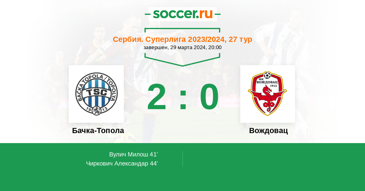 | Бачка-Топола | 21:11 | 14:5 | 7:6 |
