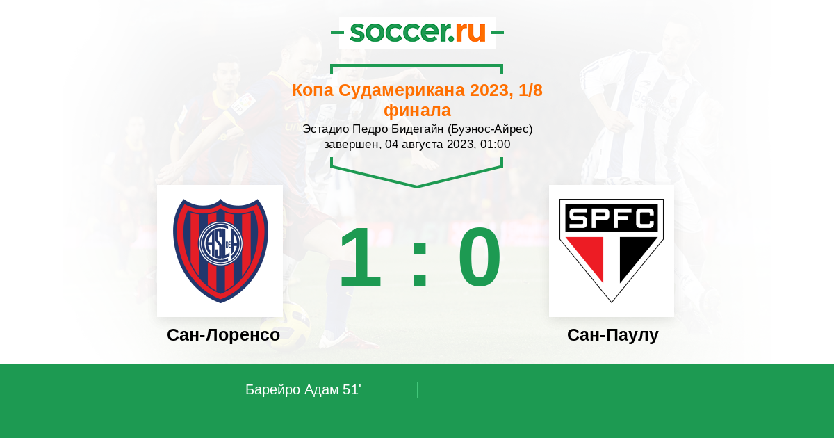 | Сан-Лоренсо | 1:3 | 1:0 | 0:3 |