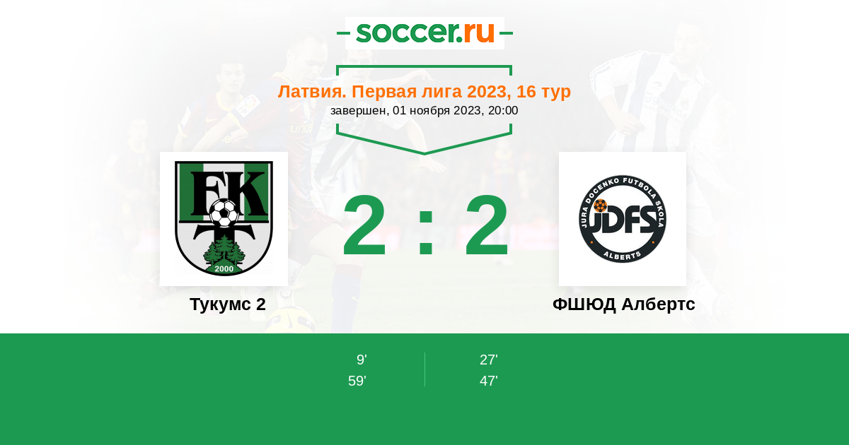 | ФШЮД Албертс | 23:9 | 12:7 | 11:2 |