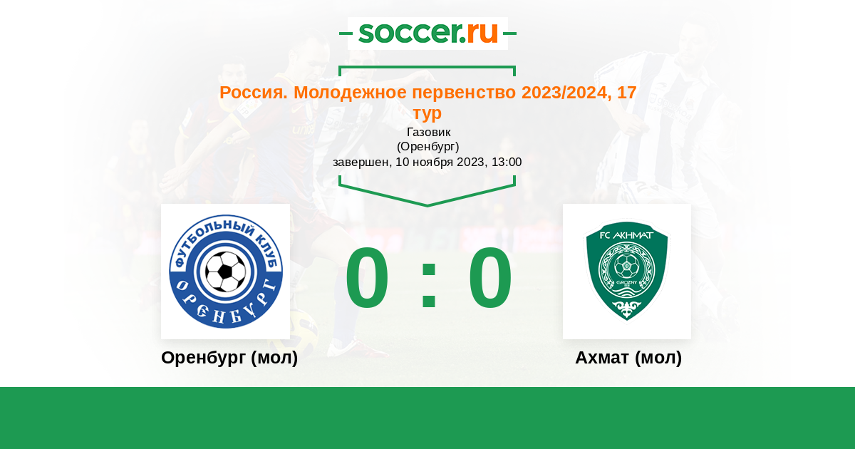| Оренбург (мол) | 10:18 | 7:8 | 3:10 |