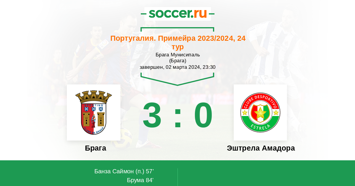 | Брага | Эштрела Амадора | |