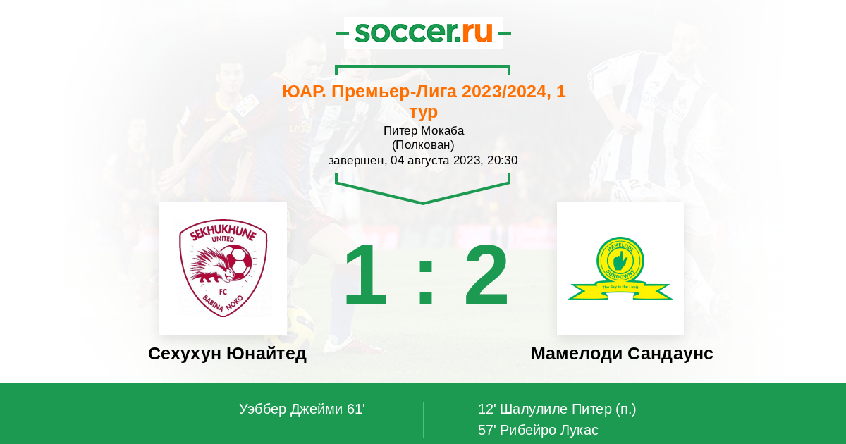| Сехухун Юнайтед | Мамелоди Сандаунс | |