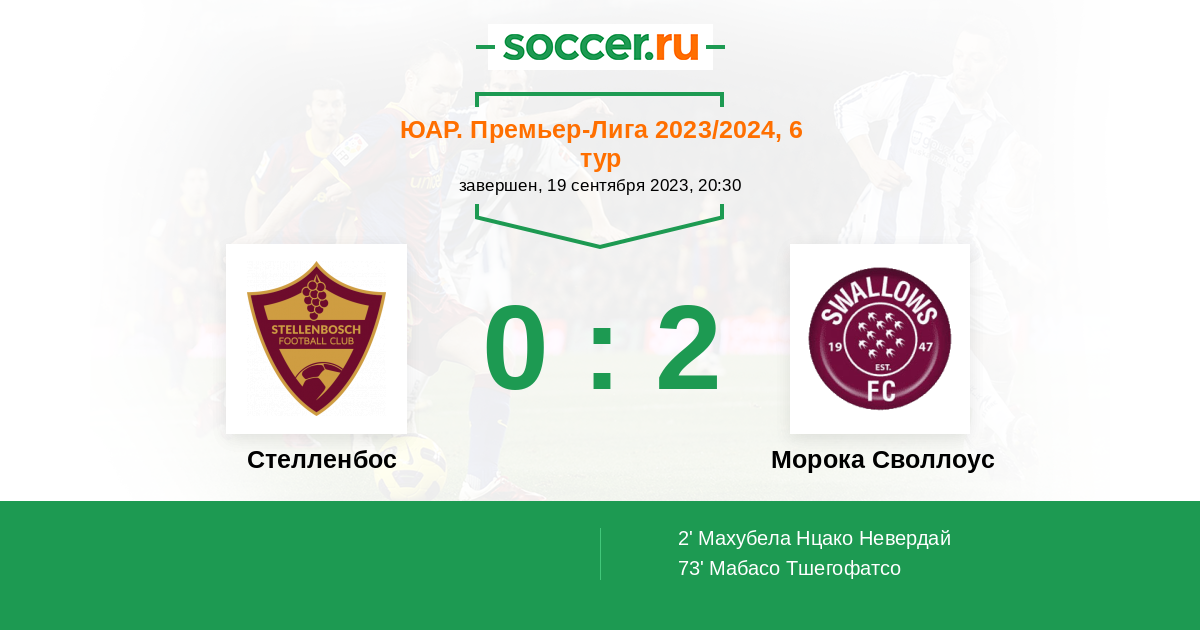 Морока Своллоус 2:0 Стелленбос