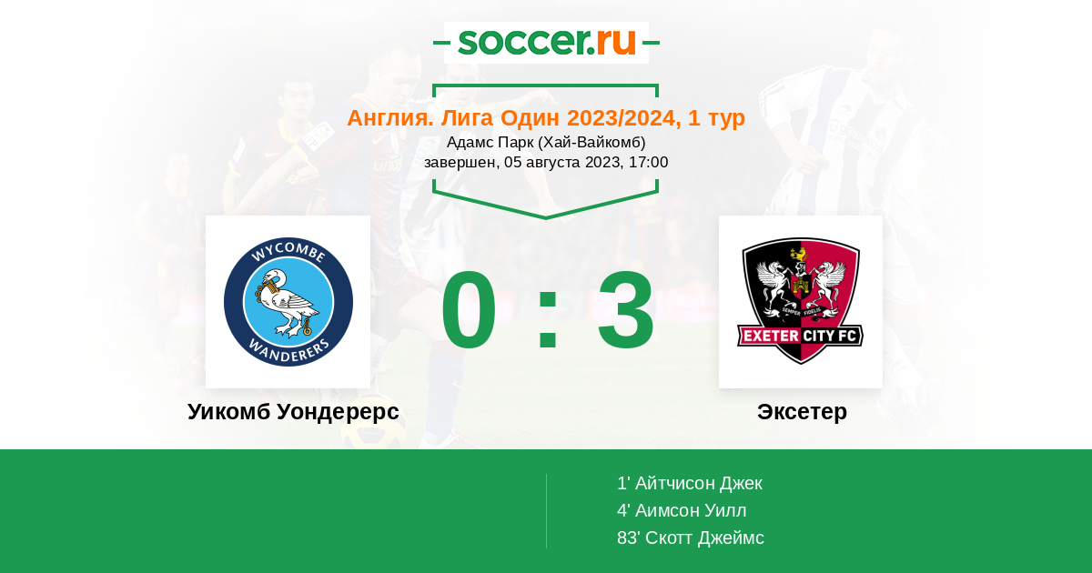 | Уикомб Уондерерс | Эксетер | |