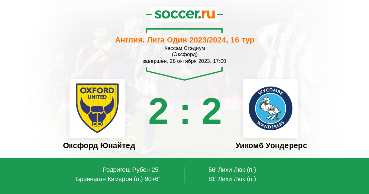 | Оксфорд Юнайтед | Уикомб Уондерерс | |