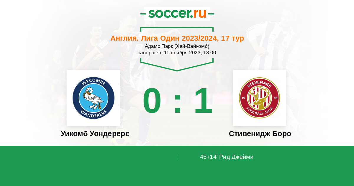 | Уикомб Уондерерс | Стивенидж Боро | |