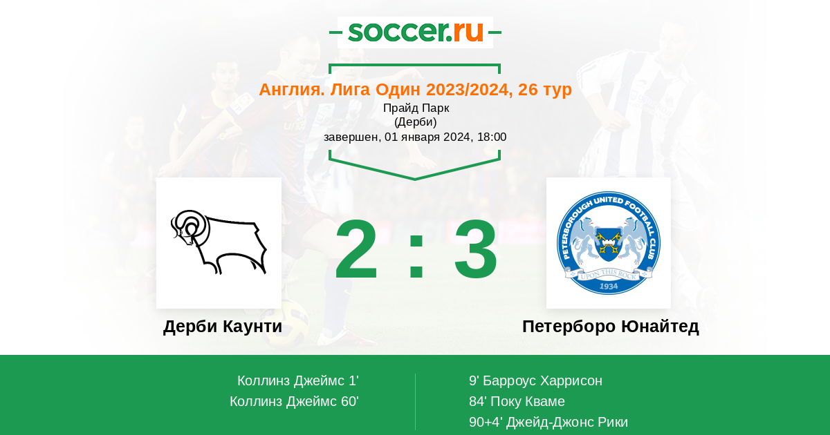 | Дерби Каунти | Петерборо Юнайтед | |