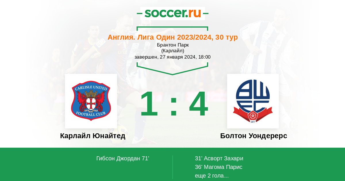 | Карлайл Юнайтед | Болтон Уондерерс | |