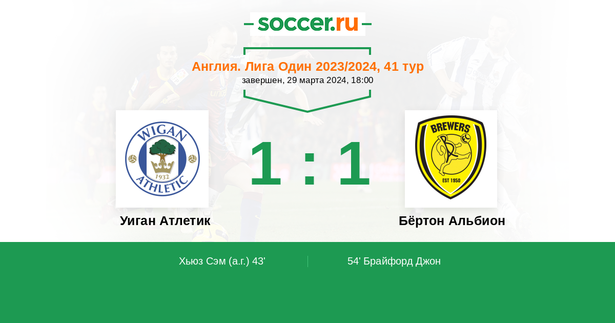 | Уиган Атлетик | Бёртон Альбион | |