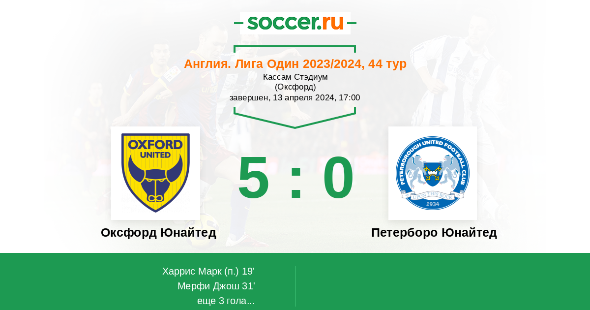 | Оксфорд Юнайтед | 35:33 | 18:10 | 17:23 |