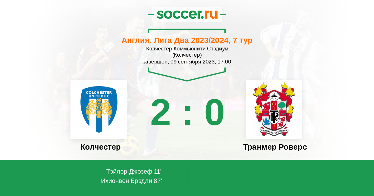 | Колчестер | Транмер Роверс | |